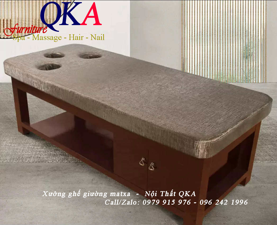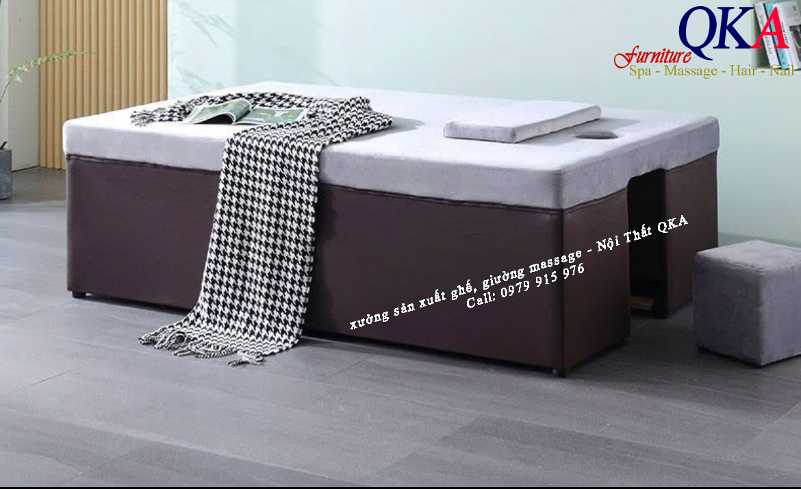 Mẫu giường spa trong hình là sự kết hợp hoàn hảo giữa tính thẩm mỹ và công năng, mang lại cảm giác thư giãn tối đa cho khách hàng và sự tiện lợi cho người sử dụng.