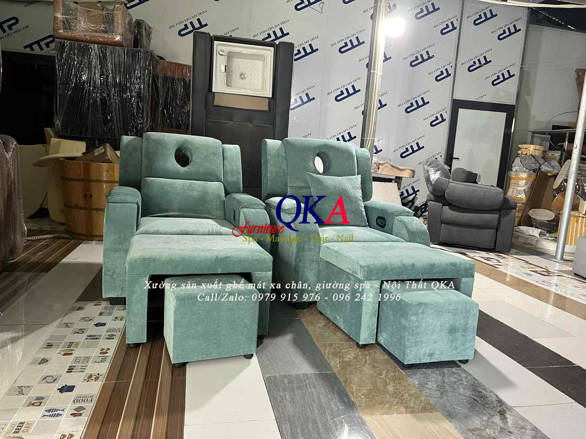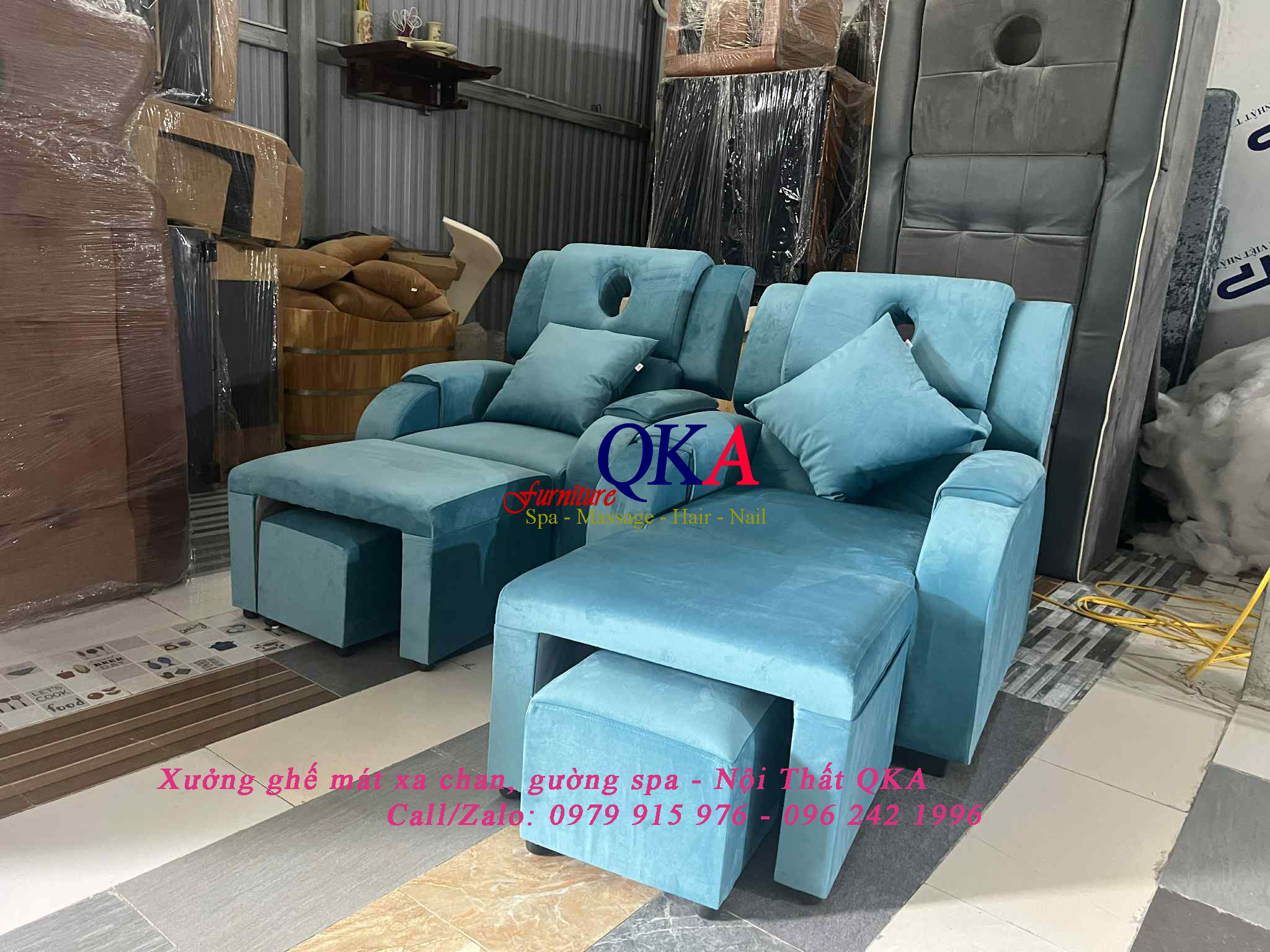 Ngoài sản xuất cung cấp ghế matxa chân spa. Nội Thất QKA còn sản xuất cung cấp giường massage, ghế thư giãn, ghế sofa…